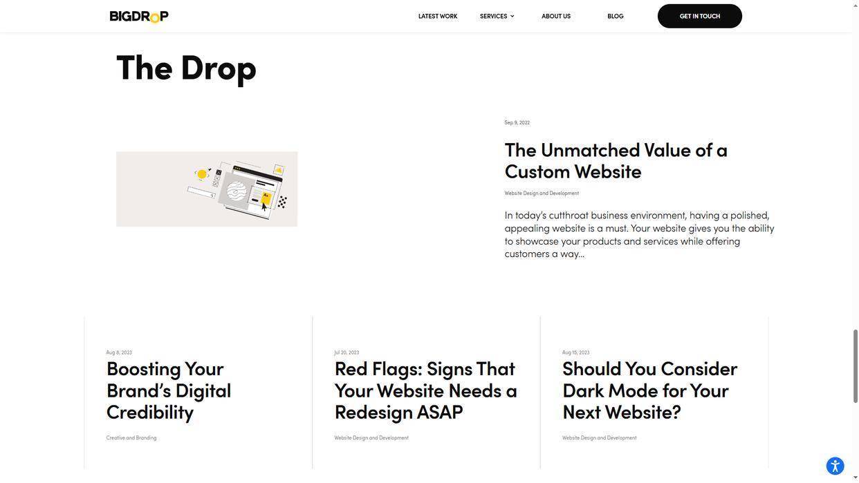 巨降设计bigdrop是美国专注高端网站建设的机构,以创意视觉设计与技术实现的平衡为核心竞争力,擅长通过视觉呈现传递企业品牌调性,同时保证网站功能稳定运行。作为专业网站建设公司,其服务特色在于设计美感与技术实用性的协同。